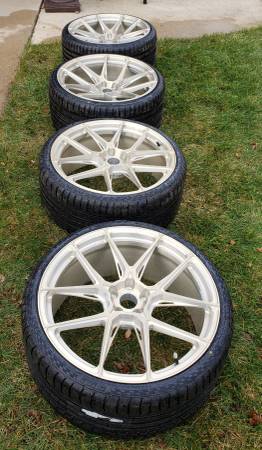 Set of 4 beautiful gold rims, shown on Jaguar F-Type S Forgestar EH181, 21", Concave 21x9.5+42 Front 21x11+28 Rear Tires: 255/30/21 295/25/21 5x108mm lug pattern Other cars that share this lug...